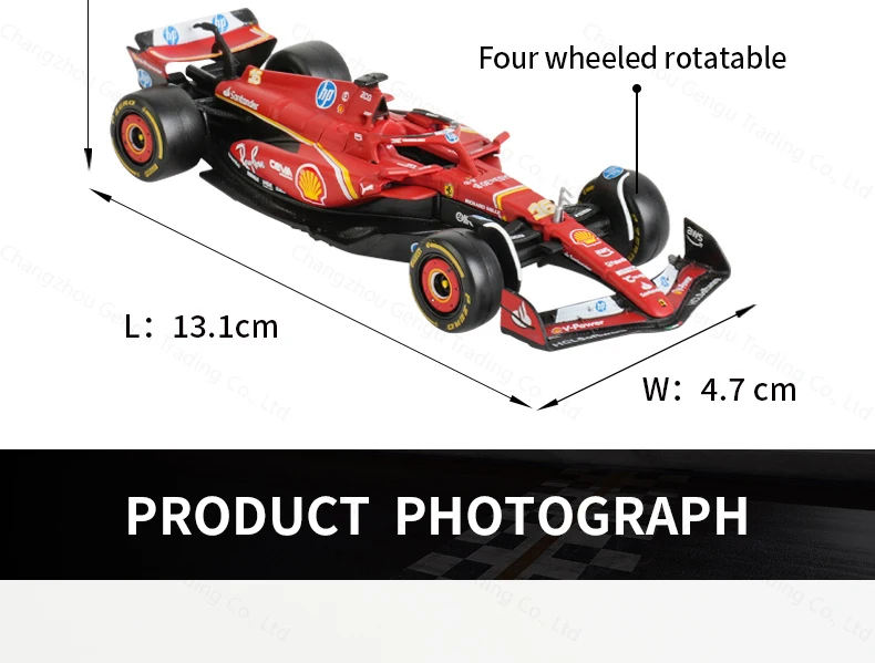 O Bburago 1:43 Ferrari 2024 SF24 foi meticulosamente reproduzido para capturar a beleza e a agressividade dos carros de corrida da Fórmula 1. Cada curva, aerofólio e patrocínio foram fielmente replicados, proporcionando uma simulação estática impressionante que reflete a essência da equipe Ferrari nas temporadas #16 e #55. 🏁
